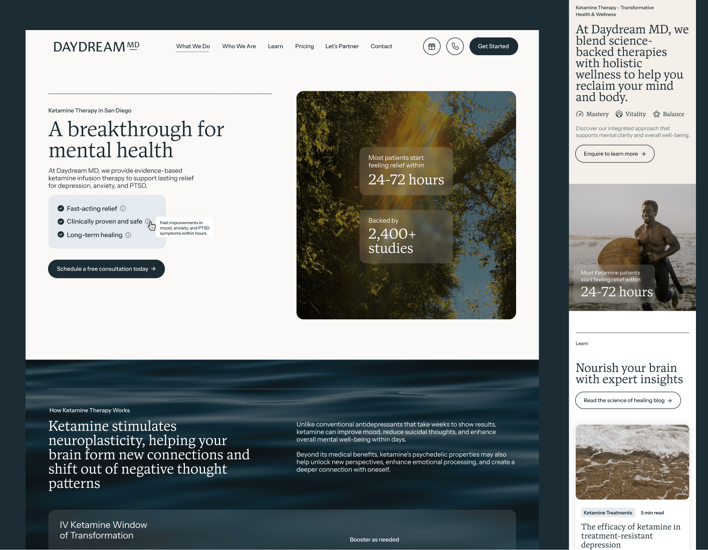 Daydream MDHow Daydream MD’s Rebrand + Website Re-Secured Their Google Search RankingHey Reader, When we first started working with Daydream MD—a San Diego-based ketamine and therapy clinic—they were right in the middle of a major turning point for their business. They were building a brand new office, refining their offers, and targeting a more elevated clientele than their previous customer avatar would suggest. As we started to kick off their website redesign, the Daydream MD team was concerned about the SEO repercussions: they’d spent years investing in their incredibly high Google ranking and didn’t want the redesign of their new site to bump them from the first page of Google. Instead of approaching the project like a brand new, never-before-indexed website, we worked closely with Daydream MD’s SEO strategist to determine a well-researched transition plan that wouldn’t impact their Google ranking at all. Not only that, but their project tipped off a HUGE brand upgrade, which included verbal positioning, brand language, and a content library full of sales angles that Daydream MD could repurpose across every corner of the internet. We revamped almost every element of the Daydream MD brand, but the key areas that created the majority of the transformation took place by… Elevating their brand to look like a luxury consumer product or service, rather than a small business that was just starting out Clarifying their visual identity so it looks like it’s at the same caliber of luxury wellness brands like Equinox, Hims, and Alo Yoga Developing the key messaging that would make them known as the go-to place for world-class mental health services in their geographic region Optimizing their website content flow for conversion so they could generate more leads that convert into future clients Leveraging their past SEO investments and ensuring that version 2.0 of their website had no impact on their Google search ranking Decluttering the content on their website so key content was intuitive and easy-to-find, instead of all over the place One of the other parts of this project we enjoyed was how cross-collaborative the creative process became. We worked hands on with work streams and internal teams across Daydream MD’s organization which not only made their project 10X more effective—it also generated even better ideas than if we had worked with just one person. Want to collaborate with us on YOUR 2026 rebrand or website build? Click here to learn more about our services or fill out this form and tell us about your next project. Now booking projects for Q1 February - 2 spots Until next time,